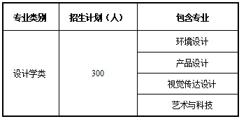 為給予學(xué)生更多的專業(yè)選擇機會,我校藝術(shù)類專業(yè)實行大類(設(shè)計學(xué)類)招生。入學(xué)一年后按照學(xué)習(xí)成績和學(xué)生志愿進行專業(yè)分流。整體招生計劃如下: