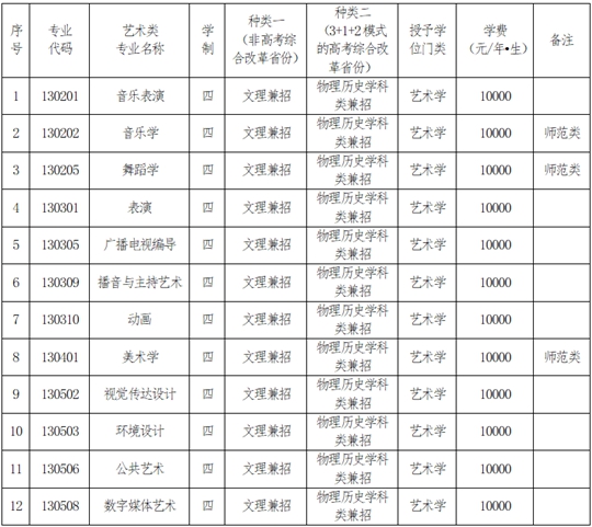 二、藝術類招生計劃安排