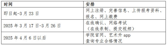 參加網絡視頻考試的考生須在我院規定時間內,通過學院指定考試平臺完成網上注冊、完善信息、報考資料上傳(包括給本人拍頭像照、上傳本人身份證、上傳天津市高職分類考試報名確認表、錄制本人短視頻)、報名(選擇學校、考點和專業)、網上繳費、在線確認、網絡考試(在線錄制、提交視頻)七個步驟。學院指定報名、考試平臺:藝術升app。(具體操作辦法詳見《2025年天藝藝術類招生考試平臺操作說明和注意事項》)未按照規定步驟或者報考資料不全者視為報考不成功,無法參加考試。