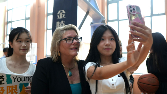 索菲亞大學校長Carol Humphreys一行深入課堂,感受課堂氛圍,沉浸式體驗學生高效課堂。