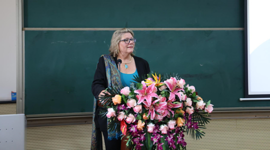 索菲亞大學校長Carol Humphreys就A Whole-Person Education全人教育A Humanistic/Transpersonal Student-Centered Approach for Higher Education.以人為本/以學生為中心的高等教育途徑開展演講。