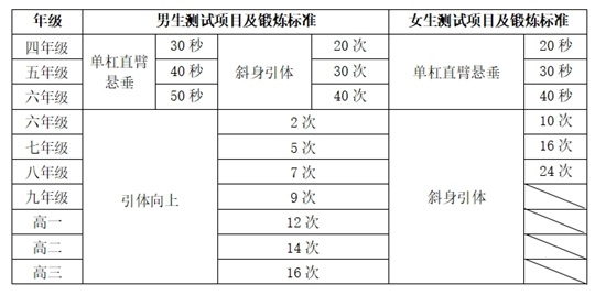 為有效提升學生上肢力量,結合本市學生實際情況,制定不同年級鍛煉標準,請參照執行。