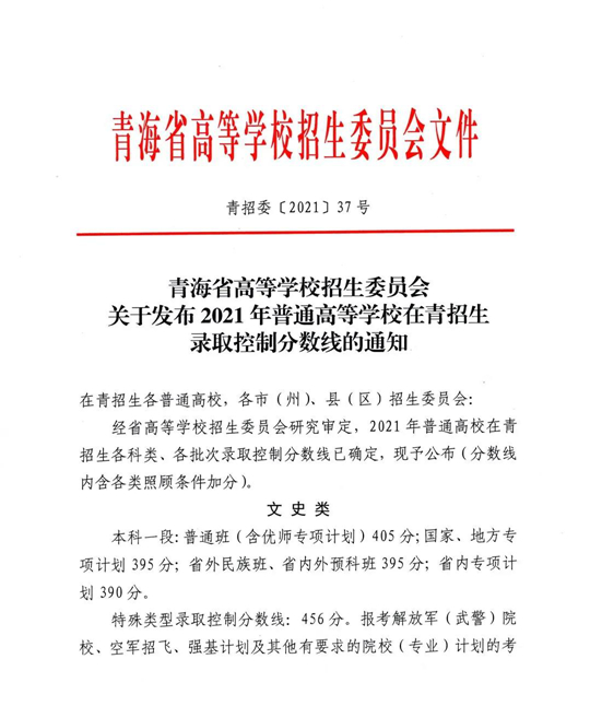 | 青海:關(guān)于發(fā)布2021年普通高等學(xué)校在青招生錄取控制分?jǐn)?shù)線的通知 |