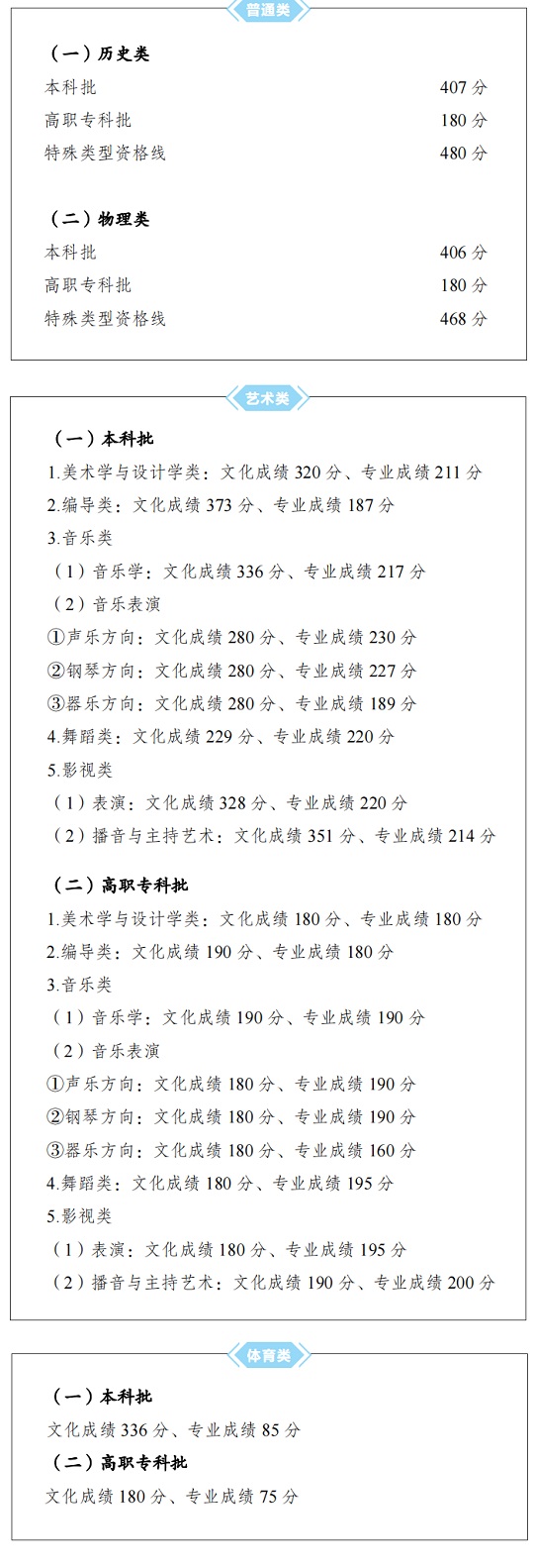重慶市2023年全國普通高校各類招生錄取最低控制分數線