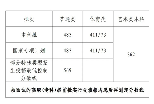 2023年我省本科批、部分特殊類型招生及藝術(shù)類本科批(文化課)的錄取最低控制分?jǐn)?shù)線已確定,現(xiàn)向廣大考生公告如下: