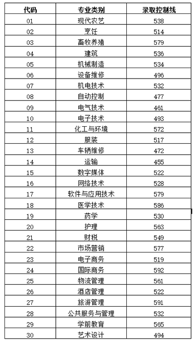 1.普通類:特殊類型招生控制線520分,一段線443分,二段線150分!3+2對口貫通分段培養”高職志愿填報資格線為393分。