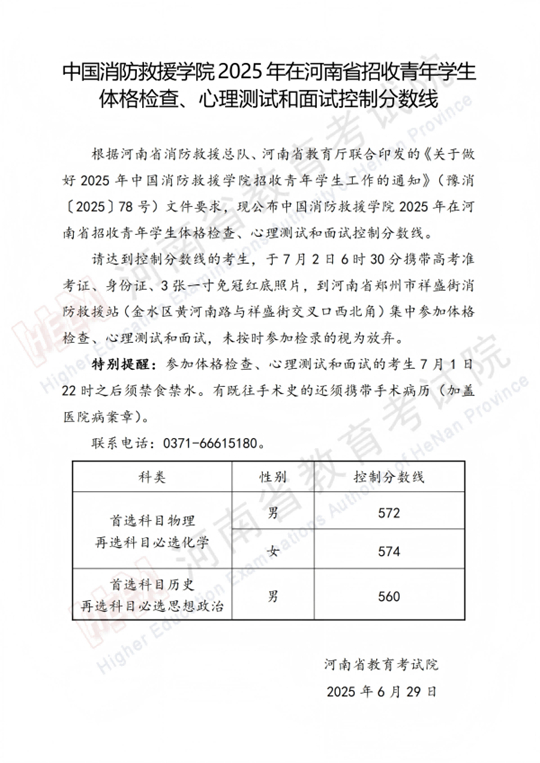 中國(guó)消防救援學(xué)院2025年在河南省招收青年學(xué)生體格檢查、心理測(cè)試和面試控制分?jǐn)?shù)線
