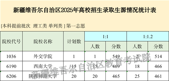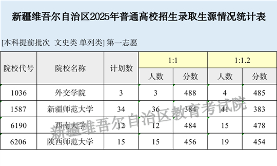 | 新疆維吾爾自治區2025年普通高校招生單列類本科提前批次投檔情況 |