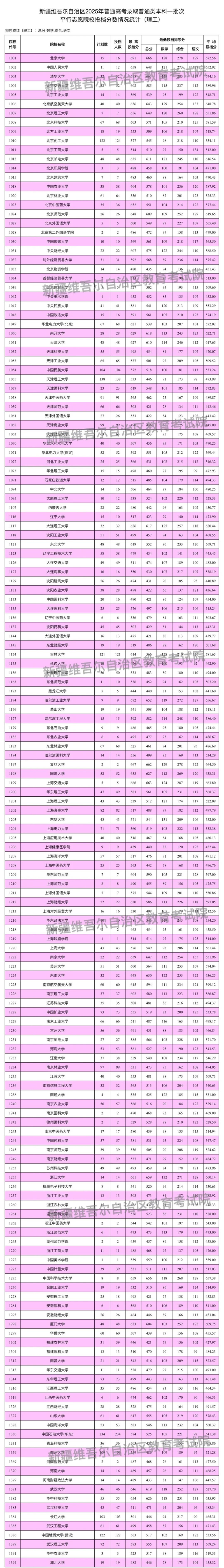 | 新疆維吾爾自治區2025年普通高校招生普通類本科一批次投檔情況 |