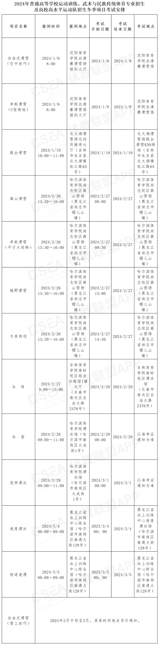 | 2024年普通高等學校運動訓練、武術與民族傳統體育專業招生及高校高水平運動隊招生冬季項目考試安排 |