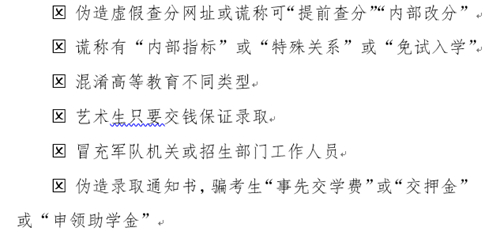 高考結束后,不法分子會利用考生及家長迫切上學的心情及焦慮的情緒,偽造、編造招考騙局。請廣大考生及家長“擦亮”眼睛,謹防上當受騙。