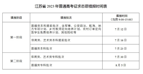 江蘇省2023年普通高考征求志愿填報時間表