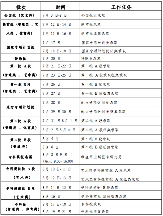 吉林省2023年普通高考錄取工作時間安排