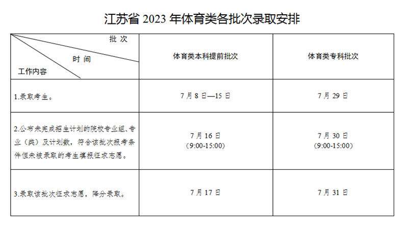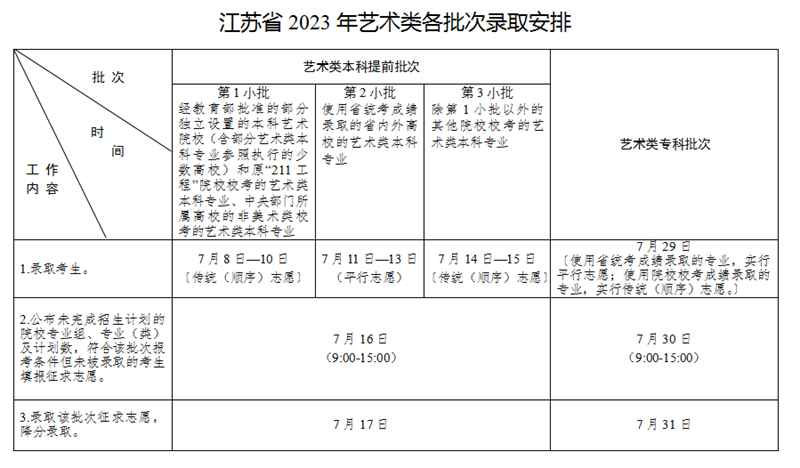 2023年江蘇省普通高校招生錄取批次和時間安排如下。