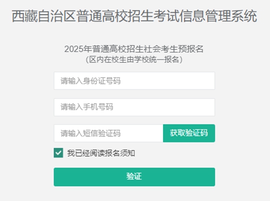 考生登錄西藏自治區普通高校招生考試信息管理系統(http://ptgx.zsks.edu.xizang.gov.cn:8082)從【社會考生預報名】入口,按照要求真實填報相關信息,進行實名注冊。