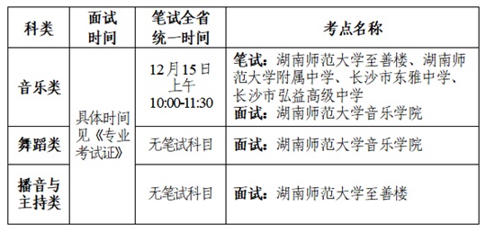 | 湖南省2025年音樂類、舞蹈類、播音與主持類專業全省統考考前提醒 |