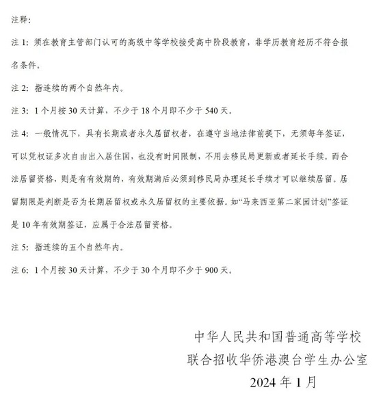 | 2024年中華人民共和國普通高等學校聯合招收華僑港澳臺學生簡章 |
