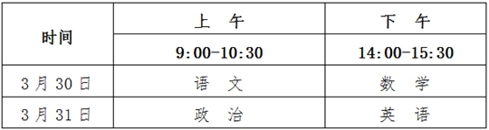 按照全國統一安排,文化考試科目為語文、數學、政治、英語四科,每科滿分150分,共計600分,考生須使用國家通用語言文字作答。