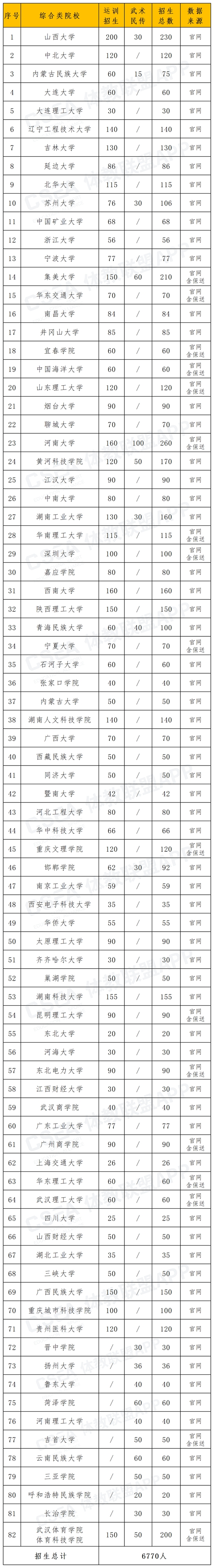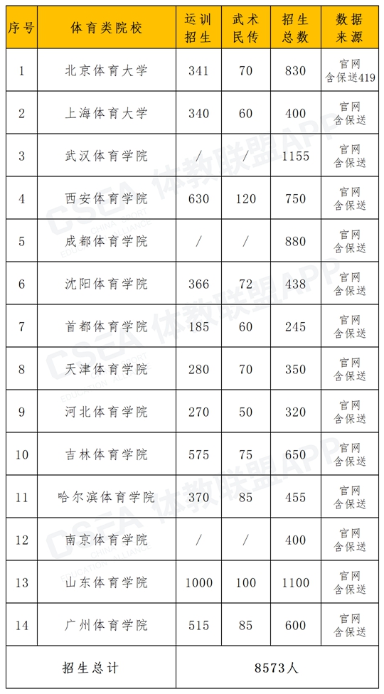 1、14所體育類院校