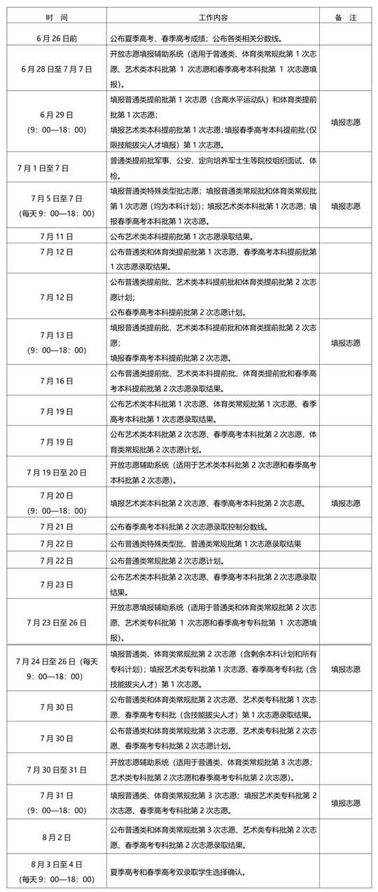 山東省2024年普通高校招生錄取工作進(jìn)程表