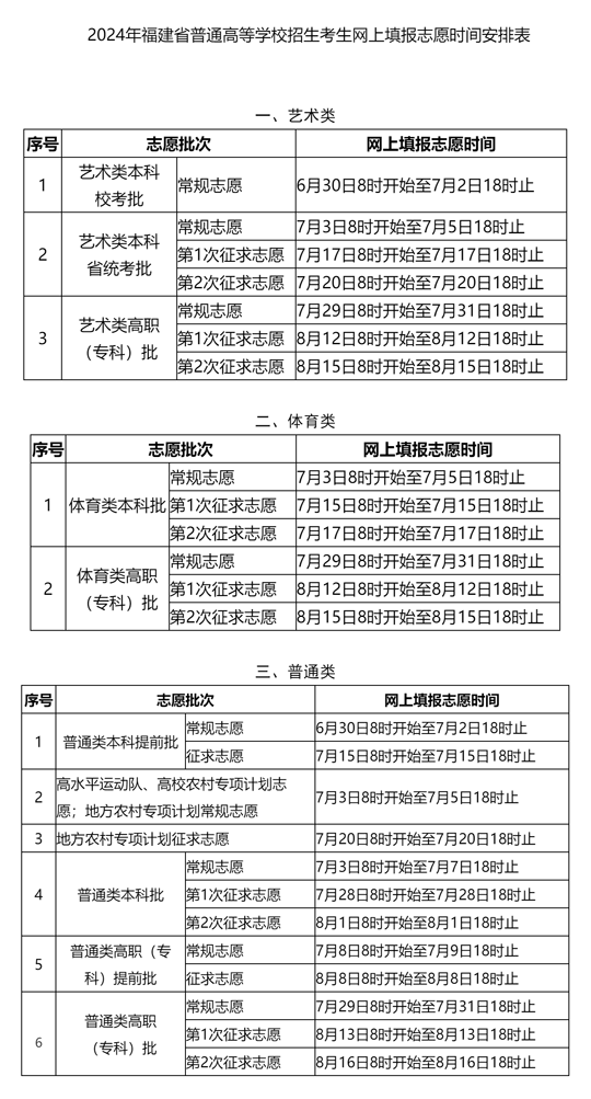 | 2024年福建省普通高等學(xué)校招生考生網(wǎng)上填報(bào)志愿時(shí)間安排表 |