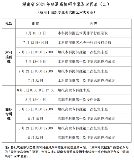 湖南省2024年普通高校招生網(wǎng)上填報志愿及錄取時間表