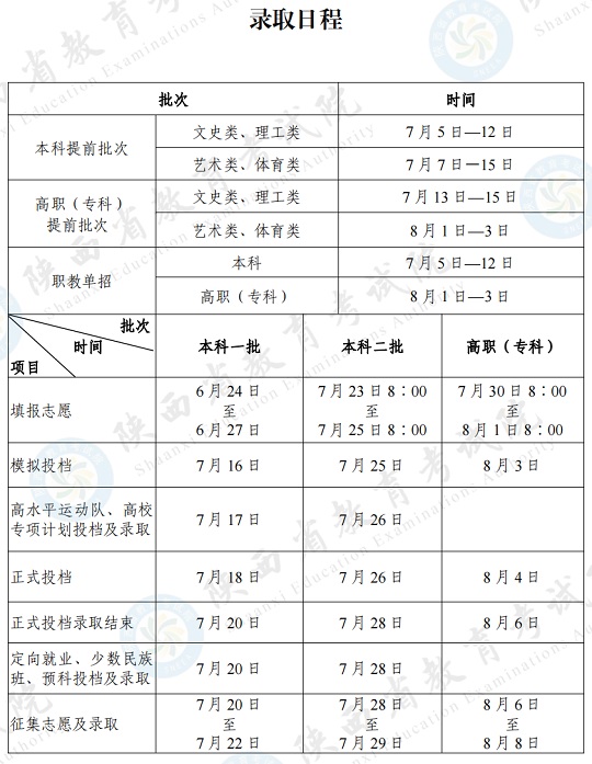 2024年陜西省高考錄取日程