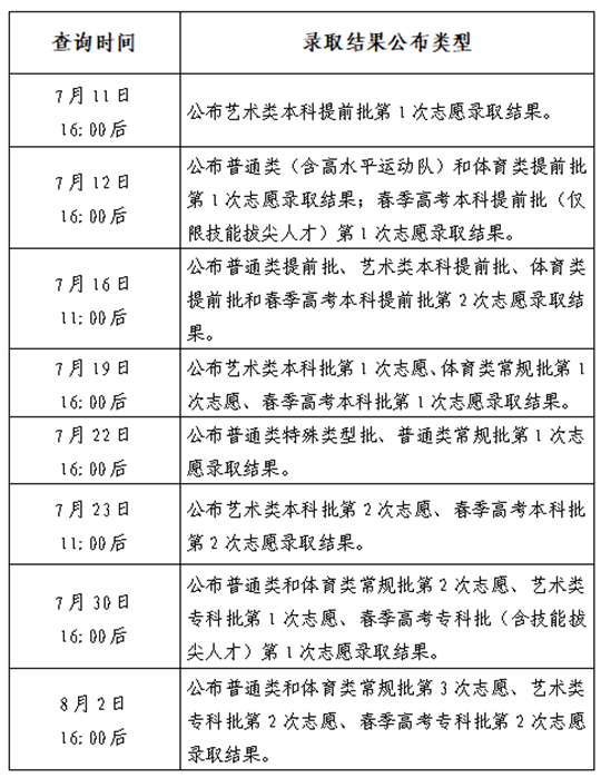二、錄取結(jié)果查詢(xún)時(shí)間及類(lèi)型