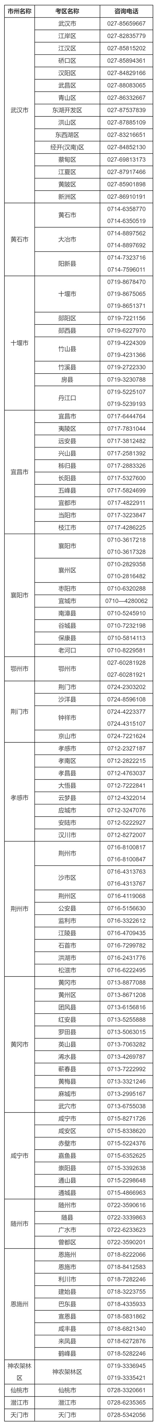 2026年湖北省各市(州)考區(qū)普通高考報名咨詢電話