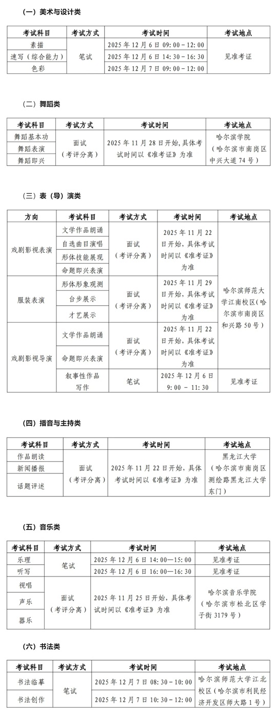 | 關于黑龍江省2026年普通高校招生藝術類專業考試時間地點等有關事宜的通知 |