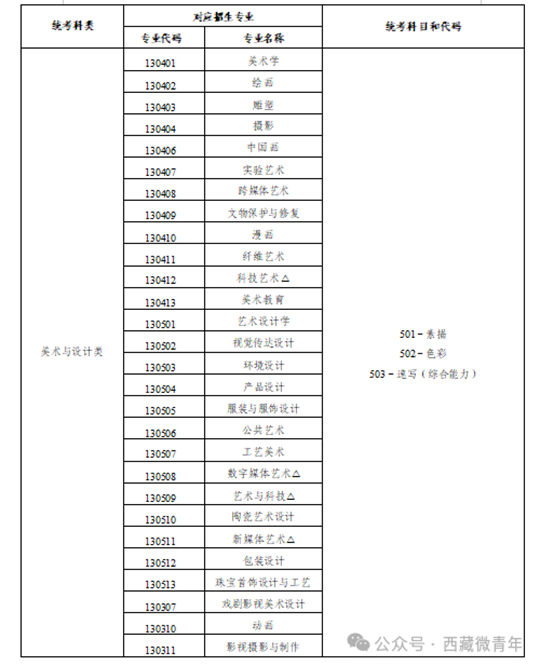 為貫徹落實教育部《關(guān)于進一步加強和改進普通高等學(xué)校藝術(shù)類專業(yè)考試招生工作的指導(dǎo)意見》(教學(xué)〔2021〕3號)精神,根據(jù)教育部關(guān)于普通高等學(xué)校藝術(shù)類專業(yè)考試招生錄取工作有關(guān)文件規(guī)定,按照西藏自治區(qū)教育廳《關(guān)于印發(fā)〈西藏自治區(qū)進一步加強和改進普通高等學(xué)校藝術(shù)類專業(yè)考試招生工作的實施方案(試行)〉的通知》(藏教廳〔2023〕70號)相關(guān)要求,本類統(tǒng)考按照統(tǒng)一設(shè)點、統(tǒng)一命題、統(tǒng)一制卷、統(tǒng)一考試、統(tǒng)一評分的原則組織實施。報考區(qū)內(nèi)外學(xué)校相關(guān)專業(yè)的考生,均須參加本類統(tǒng)考。