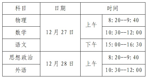 答:各學科試卷卷面分值為100分;歷史、地理、化學、生物學學科考試時長為70分鐘;語文、數學、英語學科考試時長為90分鐘;思想政治、物理學科考試時長為80分鐘。