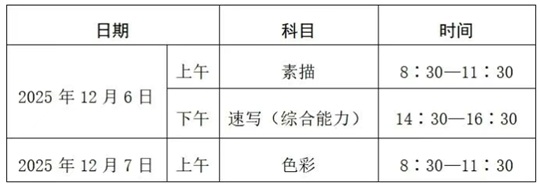 浙江省2026年高考美術(shù)與設(shè)計(jì)類省統(tǒng)考將于2025年12月6日—7日舉行。考生須帶齊必要證件,做好赴考準(zhǔn)備。一起來(lái)看考前提醒。