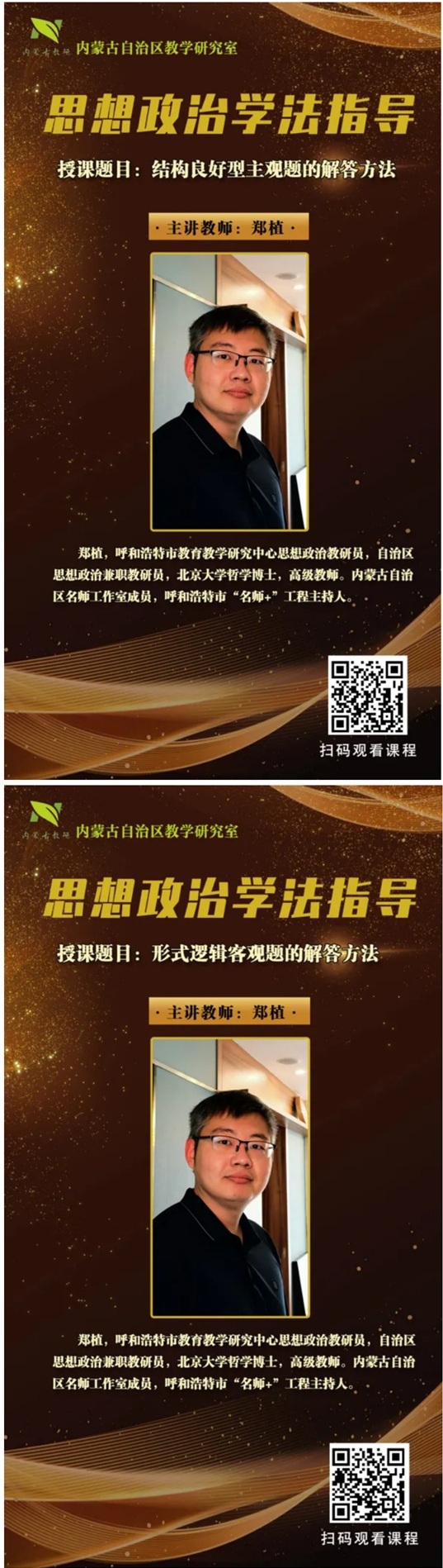 鄭植,呼和浩特市教育教學研究中心思想政治教研員,自治區思想政治兼職教研員,北京大學哲學博士,高級教師。內蒙古自治區名師工作室成員,呼和浩特市“名師+”工程主持人。