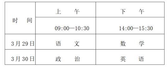 按照全國統一安排,文化考試科目為語文、數學、政治、英語四科,每科滿分150分,共計600分,考生須使用國家通用語言文字作答。