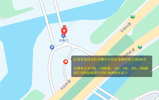 可乘坐公交170、170短班、225、245、265、269路,到江西科技師范大學紅角洲校區站下。