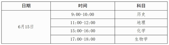 本次合格性考試開考?xì)v史、地理、化學(xué)和生物學(xué)4門科目,開考15分鐘后不允許遲到考生進(jìn)場(chǎng),請(qǐng)考生牢記各科考試時(shí)間,按時(shí)參加考試。