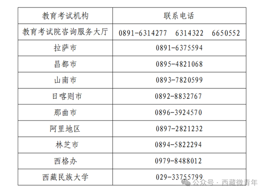 6.現(xiàn)場咨詢:西藏自治區(qū)教育考試院咨詢服務(wù)大廳,各地市教育局考試中心、西格辦招生辦、西藏民族大學(xué)招生辦。