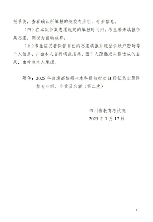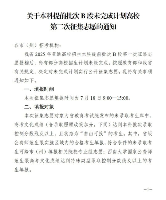 四川:關(guān)于本科提前批次B段未完成計(jì)劃高校第二次征集志愿的通知