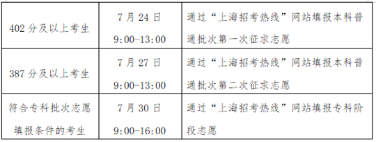 答:7月23日,參加本科普通批次招生的考生可通過市教育考試院“上海招考熱線”網站(www.shmeea.edu.cn)查詢本科普通批次錄取結果。未能被錄取的考生仍可以通過填報本科普通批次兩次征求志愿和專科階段志愿來爭取錄取機會,相關填報安排如下: