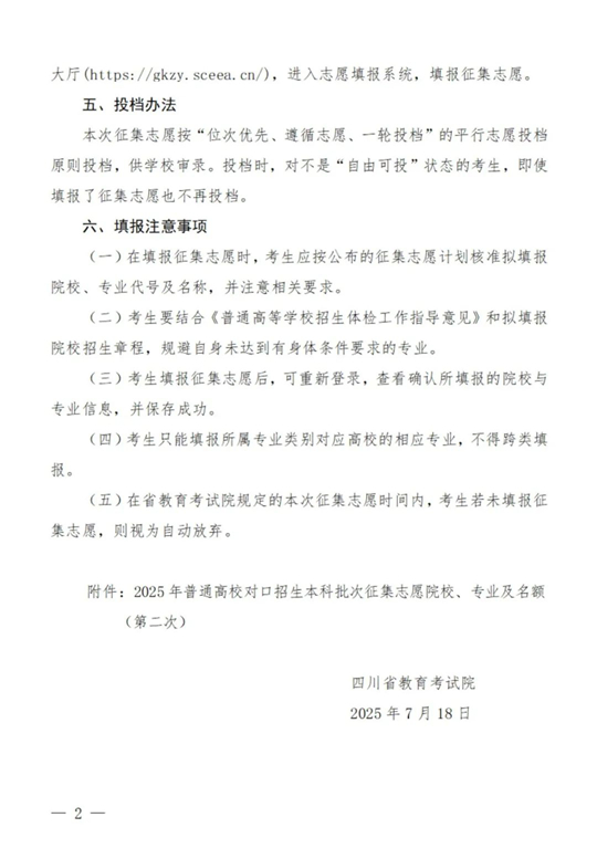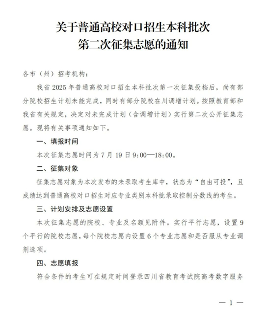 四川:關(guān)于普通高校對口招生本科批次第二次征集志愿的通知