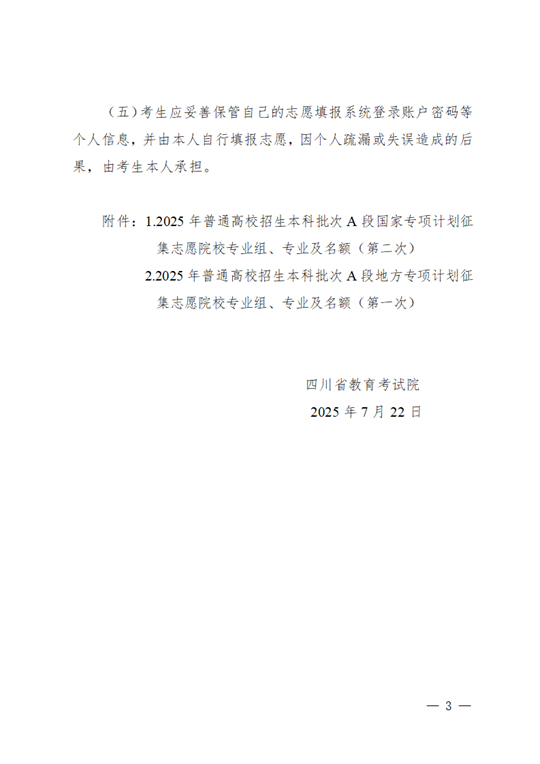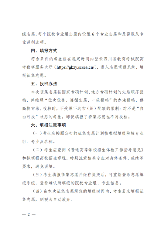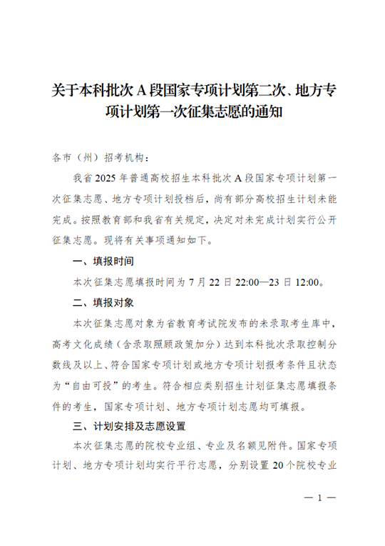四川:關于本科批次A段國家專項計劃第二次、地方專項計劃第一次征集志愿的通知