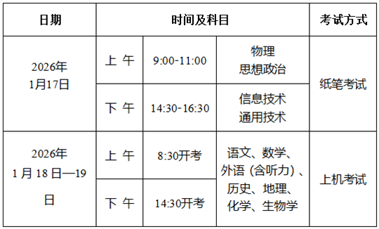 我市2025-2026學年度第一學期普通高中學業(yè)水平合格性考試將于2026年1月17日-19日進行。現(xiàn)將考試及報名有關(guān)安排公告如下: