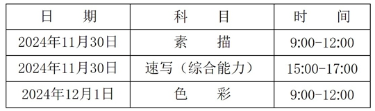 2024年11月下旬(音樂或舞蹈面試結束后)開始,具體考試時間見本人《專業統考準考證》。