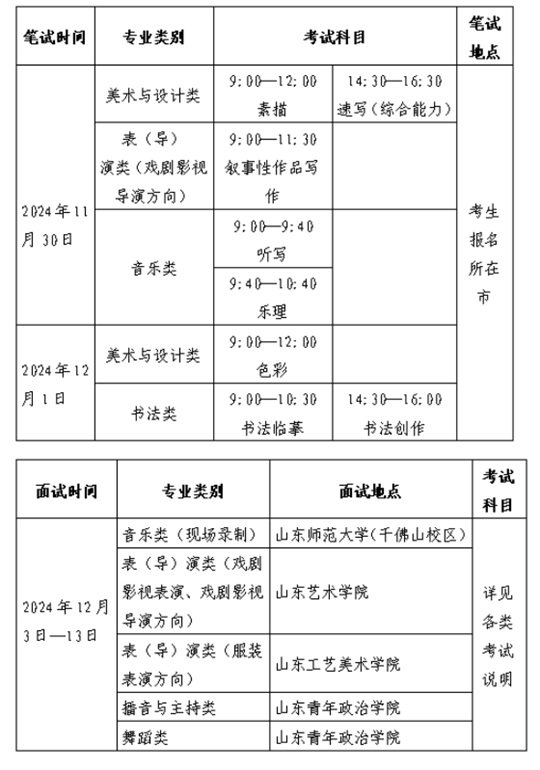| 山東省2025年普通高等學校招生藝術類專業統一考試公告 |