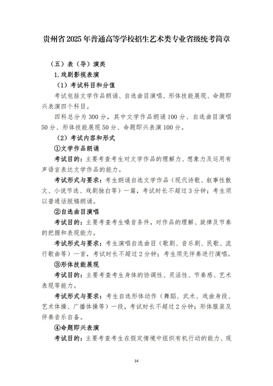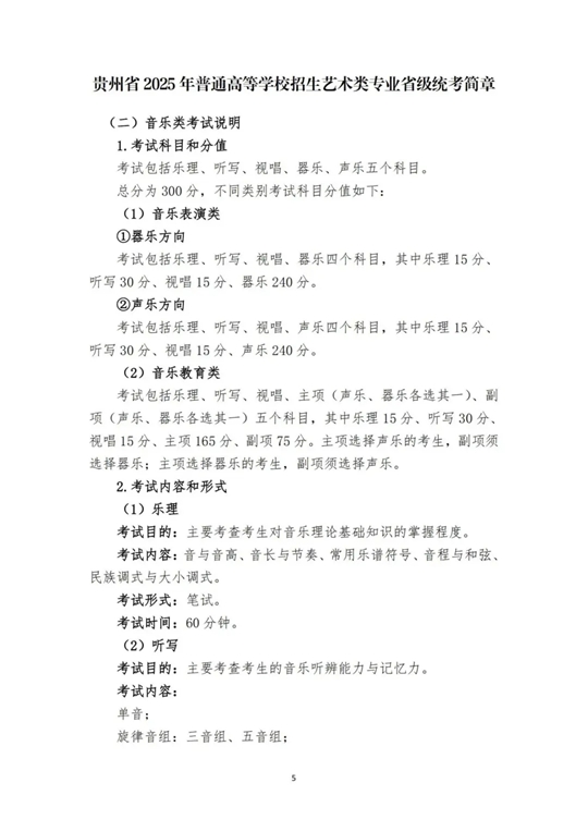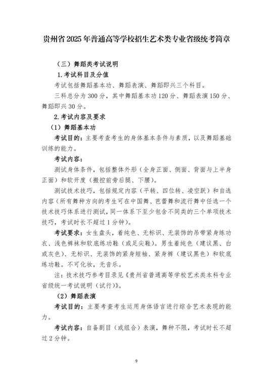 | 貴州省2025年普通高等學校招生藝術類專業省級統考簡章 |