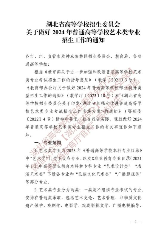 | 湖北省高等學校招生委員會關于做好2024年普通高等學校藝術類專業招生工作的通知 |