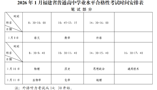 | 福建:關(guān)于2026年1月普通高中學(xué)業(yè)水平合格性考試報(bào)名工作的通告 |