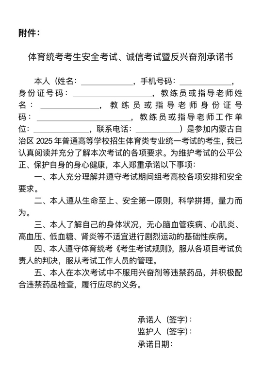 附件:體育統(tǒng)考考生安全考試、誠信考試暨反興奮劑承諾書
