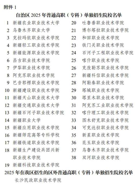 1.自治區2025年普通高職(專科)單獨招生院校名單